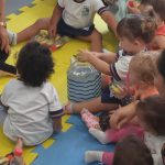 Foram confeccionados com as crianças dos berçários I e II, do C.M.E.I Profª Bernardete Maria Sedrez da Silva, no dia 24/03, garrafas sensoriais contendo água e peixinhos, representando aquários, visando desenvolver a coordenação motora, concentração, percepção visual e tátil. Essa vivência foi desenvolvida para trabalhar o tema Água.