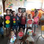 Após o passeio em frente a escola, observando a BR116, E depois de conhecerem algumas placas de trânsito, semáforos e seus significados. Construímos semáforos, placas de trânsito, utilizando papelão e pratinhos descartáveis, tintas, trabalhamos cores, formas geométricas. Depois fizemos a exposição do material confeccionado.