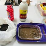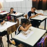 Esta atividade foi realizada a partir dos conteúdos sobre elementos da natureza trabalhados nas aulas de Arte. Conversamos sobre os elementos da natureza (ar, fogo, terra e água). É através da observação e interação com o ambiente que as crianças são estimuladas a pensar e a buscar soluções próprias para os problemas com os quais se deparam, a partir desse conceito realizamos algumas experiências envolvendo os elementos da natureza. Uma das atividades realizadas foi a confecção de tinta de terra. Fizemos a mistura dos seguintes ingredientes: terra, água e cola, obtendo uma “tinta de terra”. Livremente as crianças realizaram pintura em folha criando seus próprios desenhos.