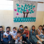 A confecção do cartaz “O meio ambiente está em nossas mãos”, foi realizado pelos alunos, foi colocado grãos de feijão no copo com algodão, os alunos observaram as fases de crescimento e desenvolvimento de uma planta e a necessidade de elementos fundamentais em seu crescimento.