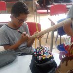 Confecção do instrumento pau de chuva