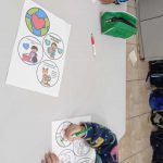 As crianças participaram com entusiasmo da confecção do livro “Eu posso cuidar do Planeta”. Cada uma pintou com capricho as ilustrações e, com o apoio da professora, observaram as frases que falavam sobre atitudes importantes para proteger o meio ambiente. Foi um momento de aprendizado e conscientização, onde os pequenos refletiram sobre como podem fazer a diferença no cuidado com o planeta.