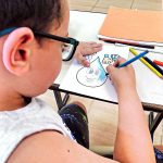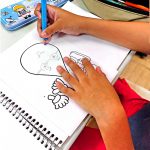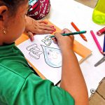 Na sequência, os alunos participaram de uma atividade artística envolvendo desenho, pintura, recorte e colagem. Utilizando um molde em formato de gota, com braços e pernas separados, cada aluno criou o rosto de sua “gotinha” por meio de desenho, explorando expressões e características próprias. Em seguida, realizaram a pintura de todas as partes (gota, braços e pernas).