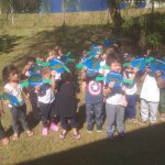 As crianças puderam vivenciar e conhecer atitudes de preservação e conscientização que preservam o meio ambiente, tiveram acesso à cartazes sobre coleta seletiva, em que observaram a separação correta do lixo e a importância de reduzir, reutilizar e reciclar. Depois disso, na área externa escola, as crianças colheram folhas caídas no chão para produzirem o planeta Terra.