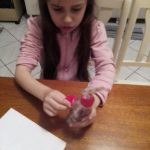 Após ouvirem a música as crianças deveriam confeccionar sua própria pipoquinha pula pula com materiais de descarte. Garrafa pet de 600 ml, palito de churrasco e a imagem enviada para pintar e simbolizar a pipoca. A atividade trabalhou de forma lúdica e divertida a conscientização sobre o reuso de materiais e também a brincadeira.