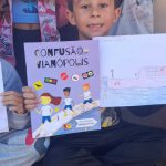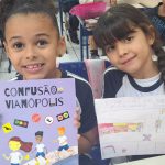 Os alunos realizaram a leitura do livro “Confusão em Vianópolis”, aprendendo sobre a importância da educação no trânsito e da conscientização de pedestres e condutores. Após a leitura, fizeram uma pesquisa com suas famílias sobre o tema e confeccionaram desenhos para incentivar atitudes responsáveis e seguras no trânsito.