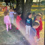 Desenvolvimento: Foi realizado um passeio ao redor da escola, em que os educandos tiveram a oportunidade de conhecer as árvores ao entorno do ambiente escolar, tendo a oportunidade, de maneira prática, de compreender a importância das árvores para o meio ambiente. Posteriormente, foi realizada uma atividade prática em que as crianças pintaram uma árvore.