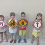 Cada criança escolheu algumas placas e fizeram o desenho dela.
