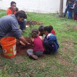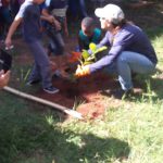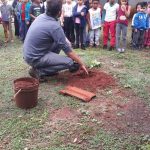 METODOLOGIA: Iniciamos com uma roda de conversa sobre o tema “De onde vem os alimentos”, explorando o conhecimento prévio dos alunos e explicando as maneiras como se pode iniciar o cultivo de alimentos em casa (sementes e mudas). Em seguida as crianças realizaram atividades de pintura. Num outro dia, recebemos na escola os funcionários da Secretaria do Meio Ambiente, que trouxeram mudas de árvores frutíferas já em fase inicial de produção e conversaram com os alunos sobre o cultivo e cuidado. Com a participação dos alunos realizaram o plantio dessas mudas, desfiando-os a cuidarem dessas mudinhas para que elas cresçam, floresçam de deem frutos.