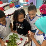 Aproveitando a história da semana “O grande rabanete” as crianças tiveram a oportunidade de ver e provar um rabanete de perto, muitos nem se quer sabiam o que é um rabanete e puderam vivenciar essa experiência bem de perto.