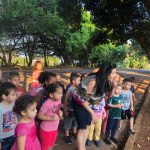 Nossa creche escola fica localizada em um bairro privilegiado, rodeado por árvores e pássaros de diferentes espécies, por vezes recebemos a visita até mesmo de saguis. Considerando esse privilégio, levamos as crianças para um passeio pelo bairro chamando atenção delas para as árvores e pássaros encontrados no caminho. Encontramos mangueiras, ipês, pés de abacate, bem-te-vi, joão-de-barro, canários, pardais, pombas, etc. Atentamos também para a importância das árvores para a sobrevivência dos pássaros, para a contribuição da qualidade do ar que respiramos e aproveitamos a sombra deliciosa que elas nos proporcionam para fazer um piquenique.