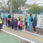 – Cada grupo vivencia diferentes situações de trânsito, como atravessar a faixa de pedestres, parar no semáforo, ceder passagem etc.