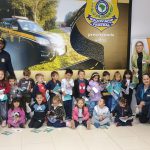 – Os policiais acompanham e orientam as crianças durante as atividades.