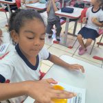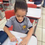 Realizamos uma aula do Projeto Trânsito sobre o semáforo e suas cores, sua simbologia e linguagem não verbal. Simulamos na sala de aula depois da aula expositiva e os alunos coloriram com o dedo as cores do semáforo. 1º ano B.