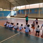 Foi realizada uma roda de conversa sobre o assunto, em seguida foi explicado como se desenvolveria a atividade, onde: todos os alunos de frente para mim, quando eu mostrasse a cor verde, todos deveriam ficar em pé e quando eu mostrasse a cor vermelha, todos deveriam agachar.