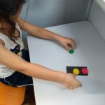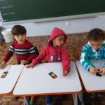 O objetivo dessa atividade foi conhecer as formas, cores e significado do semáforo. Primeiramente foi explicado aos alunos o que é um semáforo e qual a sua função. Depois da conversa em sala, a turma foi até a esquina da escola para observarem e prestar atenção na função do semáforo e quais as cores que aprecem nele. Em seguida na sala de aula, cada aluno confeccionou 0 seu, com recortes de E.V.A, respeitando as cores.