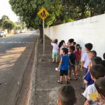- Caminhada com distribuição dos panfletos com orientações sobre o trânsito; onde os alunos foram com o crachá de semáforo.