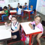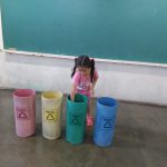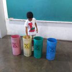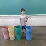 Após conversarmos sobre o significado das cores da coleta seletiva, os alunos fizeram a separação dos materiais, destinando cada um, ao recipiente adequado. O objetivo dessa ação é que, além dos alunos conhecerem e saberem o significado de cada cor, da coleta seletiva, é também valorizar a importância de reciclar.