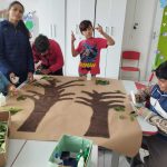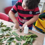 Após a leitura conversar com os alunos, ouvir suas opiniões e como entendem e pensam sobre esse tema, o que aprenderam a fazer para cuidar da natureza. Para a atividade propomos a confecção de um painel com as árvores, utilizando tinta guache e colagem de folhas verdes naturais.