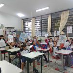 Durante a aula, os alunos participaram de uma roda de conversa sobre o trânsito, onde puderam compartilhar suas experiências e aprender sobre a importância das regras e da segurança nas vias. Após esse momento de troca e reflexão, os estudantes coloriram e confeccionaram bandeirinhas educativas com mensagens de conscientização. As bandeirinhas foram levadas para casa com o objetivo de envolver os adultos e reforçar a importância de um trânsito mais seguro e respeitoso para todos.