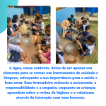 - Histórias e Músicas: Utilizarmos livros infantis ou canções que abordavam a temática da água, da higiene e da importância de economizar.