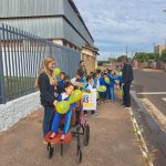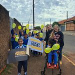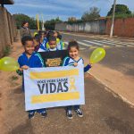 Ao iniciar a atividade, fizemos uma leitura e depois uma roda de conversa sobre o livro : Trânsito no Mundinho. Em seguida organizamos um passeio ao redor da escola, com bexigas amarelas, identificando as placas de sinalizações do trânsito e conscientizando o bairro sobre o Maio Amarelo com entregas de planfletos.