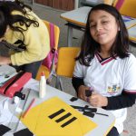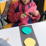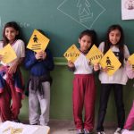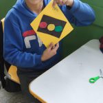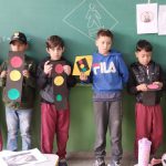 Depois os alunos confeccionaram as placas e  explicaram que existe semáforo de pedestres e de carros, a importância de utilizar o cinto, atravessar na faixa e etc.