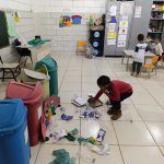 Com o aumento exacerbado da destruição do meio ambiente, é de suma importância que o tema seja trabalhado com as crianças desde os primeiros aninhos de vida, visando a contribuição de todos na preservação do meio ambiente. As atividades foram desenvolvidas com os alunos do Maternal II B, através de roda de conversa, pintura, confecção de um caminhão com material reciclado, cores das lixeiras e separação do lixo.