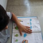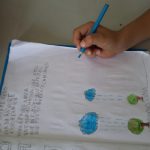 No caderno de classe os alunos copiaram uma pequena poesia com o título de “Árvore amiga”