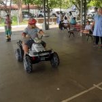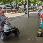 A professora de Educação Física – Maura, juntamente com os alunos da professora Taiara e auxiliar de sala Vânia, vivenciaram no pátio da escola a atividade sobre conscientização no Trânsito, utilizando como ferramenta o carro recarregável, capacete, semáforo, placas de sinalização e cones. Os alunos se divertiram, aprenderam brincando, o que tornou a aula ainda mais prazerosa.