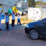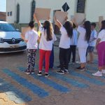 Os alunos munidos dos cartazes sobre a segurança do pedestre, foram para a rua conscientizar os motoristas sobre a importância de parar sempre na faixa e esperar o pedestre passar. Houve muito envolvimento e interação dos alunos com os motoristas que passaram pelo local.