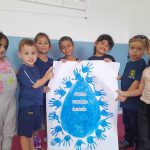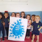 As crianças da turma pré IB realizaram uma atividade coletiva sobre a água. O objetivo de trabalhar o dia mundial da água na educação infantil é conscientizar as crianças sobre a importância da água e a necessidade de preservá-la.