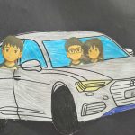 Os alunos depois fizeram uma roda conversa para debater sobre as aprendizagens da prevenção de acidentes no trânsito e construíram carrinhos com as fotos deles feitas por IA como se tivessem a idade legar para poderem dirigir