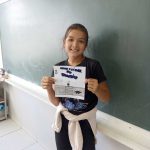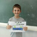 Cada aluno teve que analisar, em panfletos previamente selecionado pela professora, observando o que continha, para produzir o seu, lembrando de construir um slogan que o representasse.
