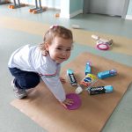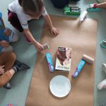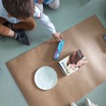 Cada aluno irá colocar o material reciclado escolhido sobre o papel kraft formando o corpo com braços, pernas, cabeça, tronco.