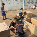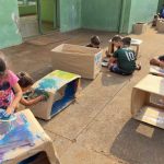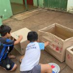 Depois de todo trabalho feito em sala com os alunos, em relação as sinalizações de trânsito e regras, a proposta foi que eles construam um automóvel para eles a partir de caixas de papelão, onde serão usadas para a próxima atividade.
