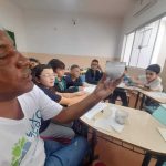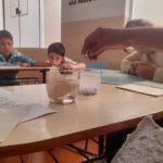 Durante uma aula de Educação Ambiental, as crianças participaram de uma oficina de produção de papel reciclado, orientada pelo professor . A atividade começou com uma conversa sobre o impacto do descarte incorreto do papel no meio ambiente e a importância da reciclagem para reduzir o lixo e preservar os recursos naturais.