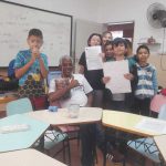 Ao final do processo, as crianças puderam ver suas folhas recicladas prontas, com texturas diferentes e um visual artesanal, resultado do trabalho feito por elas mesmas.