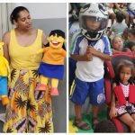 Utilizando os fantoches dos personagens Zé Quest e Laís e demais materiais, a professora contou a história chamando a atenção das turmas para a ideia central que é o uso responsável da faixa de pedestres, capacete ao andar de bicicleta ou moto, bebê conforto, cadeirinha ou assento de elevação no banco de traz do carro e cinto de segurança.