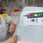 Nesta atividade, as crianças da educação infantil aprenderam sobre o significado das cores do semáforo de forma divertida e interativa. Utilizando círculos de papel vermelho, amarelo e verde, os alunos colaram as cores em um desenho do semáforo, enquanto conversavam sobre o que cada cor representa: vermelho para parar, amarelo para atenção e verde para seguir. A proposta estimulou o reconhecimento das cores, a coordenação motora e a conscientização sobre a importância de respeitar os sinais de trânsito.