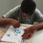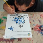 A professora trabalhou a cor azul e os cuidados que devemos ter com os animais, sejam animais domésticos, ou aquáticos. Trabalharam a coordenação motora fina, oralidade, percepção visual e auditiva, conceitos de lateralidade, dentre outras habilidades que devemos ter no trânsito seja como condutor ou pedestre.