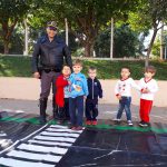 Texto: Iniciamos perguntando se as crianças já tinham observado que na frente da escola, tem vários riscos brancos no chão? Perguntamos se sabiam o nome desses riscos? Realizamos a leitura do livro Trânsito no Mundinho, através da história eles viram como o mundinho foi ficando cheio de pessoas com seus carros, bicicletas, patinetes, etc. Então criaram as regras de segurança no trânsito. Para garantirmos a paz no trânsito, as pessoas devem respeitar uns aos outros. Confeccionamos um cartaz com as crianças atravessando na faixa de segurança.
