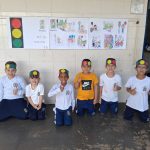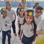 DESCRIÇÃO: CONVERSA, VÍDEOS SOBRE O TRÂNSITO, CONFECÇÃO DE UMA VISEIRA DE SEMÁFARO.  NA QUADRA BRINCARAM COM O JOGO SEMÁFORO .