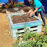 A atividade tem como objetivo criar e manter uma composteira no CEMEI. Para tanto, um dos canteiros desativados da horta foi utilizado para a composteira. Com os resíduos da merenda aproveitados foi produzido composto para a preparação e manutenção de dois canteiros. Devido à quantidade de resíduos gerados, outros recipientes como latas e caixas plásticas estão sendo usadas como composteira.