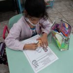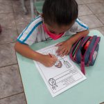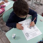 Conversaram sobre a importância de atravessar a rua na faixa de segurança, de respeitar o trânsito e estar sempre atento. Realizaram a pintura do sinal de pedestre verde, entendendo que pode atravessar, e no sinal vermelho tem que esperar.