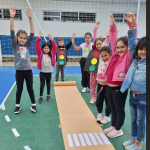 Na EB Nossa Senhora de Fátima, localizada no bairro Aririu, em Palhoça, celebramos a Semana Nacional do Trânsito com atividades lúdicas realizadas em sala de aula e na quadra da escola. Os alunos do 1º e 2º ano vivenciaram, de forma divertida e prática, a importância de conhecer e respeitar as regras de segurança no trânsito.