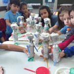 A TURMA DO PRÉ II TROUXE PARA SALA DE AULA LATAS DE BEBIDAS VAZIAS E CONFECCIONARAM O BONECO DE LATA. UTILIZARAM TAMBÉM TAMPAS DE GARRAFAS PET, BARBANTE, COPINHOS DE DANONE E ESCOVA DE DENTE. TAMBÉM CONFECCIONARAM CARRINHOS USANDO ROLO DE PAPEL.