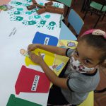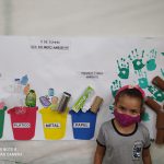 Nessa atividade diferenciada a professora criou com as crianças os cartazes sobre a importância da reciclagem e suas cores e os materiais corretos para uma coleta seletiva e também depois com foram até os bags da escola recolheram rolinhos de papel higiênico, pintaram e criaram uma linda árvore com as mãozinhas pintadas.