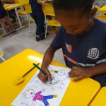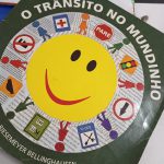 Os alunos da Educação Infantil já estão sabendo dessa regra muito importante através do livro “O trânsito no mundinho’ e para concientizar os outros alunos também, fizeram um lindo painel no corredor da escola
