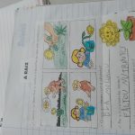 Fizemos uma produção de texto oral a partir dos desenhos da atividade, conversamos sobre os devidos cuidados com uma planta, a importância da raiz de uma planta e em seguida fizemos uma atividade registro.